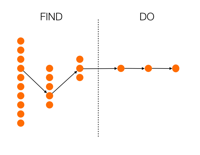 So what happens if we look at finding and doing as completely separate actions? What if we try to solve both the IA and the UI problems, depending on which phase we’re in? I think we end up with something like this: